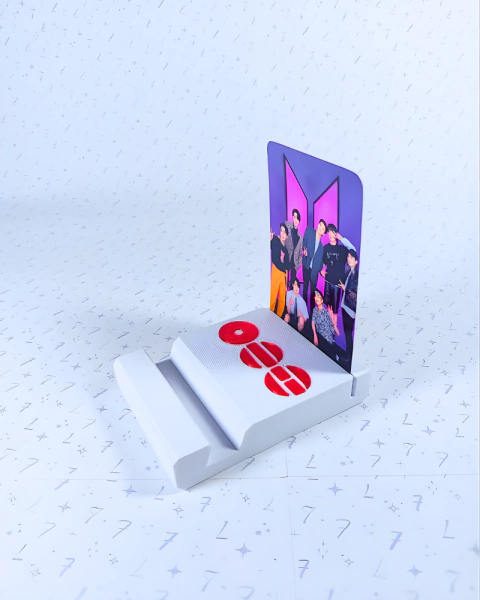 Com design exclusivo Soul Seven Shop, o suporte permite apoiar o celular de forma segura enquanto exibe, na parte frontal, um photocard de destaque, transformando o item em um verdadeiro ponto de conexão com a nova era do BTS. Ideal para mesas, criados-mudos, estantes ou setups ARMY, ele mantém tudo organizado e visível ao mesmo tempo. 📱✨